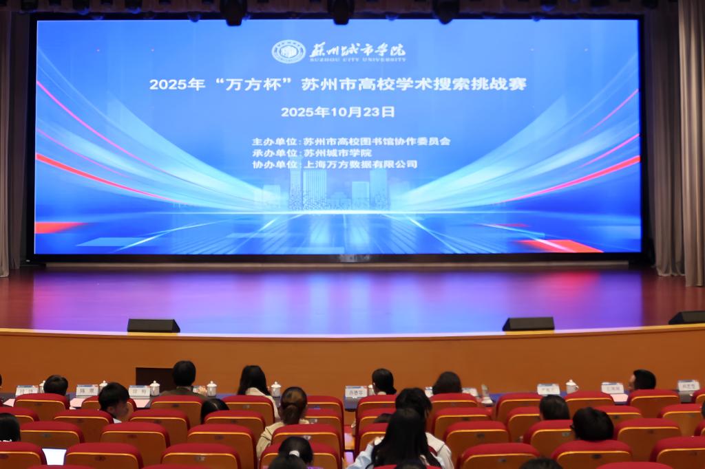 近日,2025年“万方杯”苏州市高校学术搜索挑战赛决赛在苏州城市学院落下帷幕。本次大赛由苏州市高校图书馆协作委员会主办,苏州城市学院承办,上海万方数据有限公司协办,旨在全面提升大学生的信息素养与学术研究能力。决赛开幕式上,苏州城市学院党委常委、副校长孙德芬在致辞中强调了信息素养在创新型人才培养中的核心作用,并对各界的支持表示感谢。苏州市高校图书馆协作委员会徐燕副馆长充分肯定了本届大赛的组织工作与示...