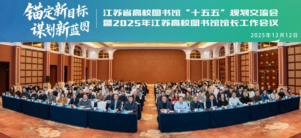 12月12日,“江苏省高校图书馆‘十五五’规划交流会暨2025年江苏高校图书馆馆长工作会议”在镇江顺利召开。本次会议由江苏省高校图书情报工作委员会及其战略规划与空间建设专业委员会主办、江苏大学图书馆承办,江苏省学位与研究生教育学会会长、江苏省教育厅原副厅长、一级巡视员袁靖宇,江苏省图书馆学会常务副理事长、南京图书馆馆长陈军,江苏大学党委副书记杨道建,以及江苏省图书情报工作委员会副主任、南京大学图书馆馆长黄贤金等来自全省90余所高校的近200位馆长及代表参会,共同聚焦图书馆未来发展,搭建高层次交流平台,系统谋划“十五五”期间江苏高校图书馆的发展路径与科学决策。李爱国、姜晓云、赵乃瑄、何琳、冯建刚等副主任委员及苏州大学原馆长钱万里等出席并主持会议。